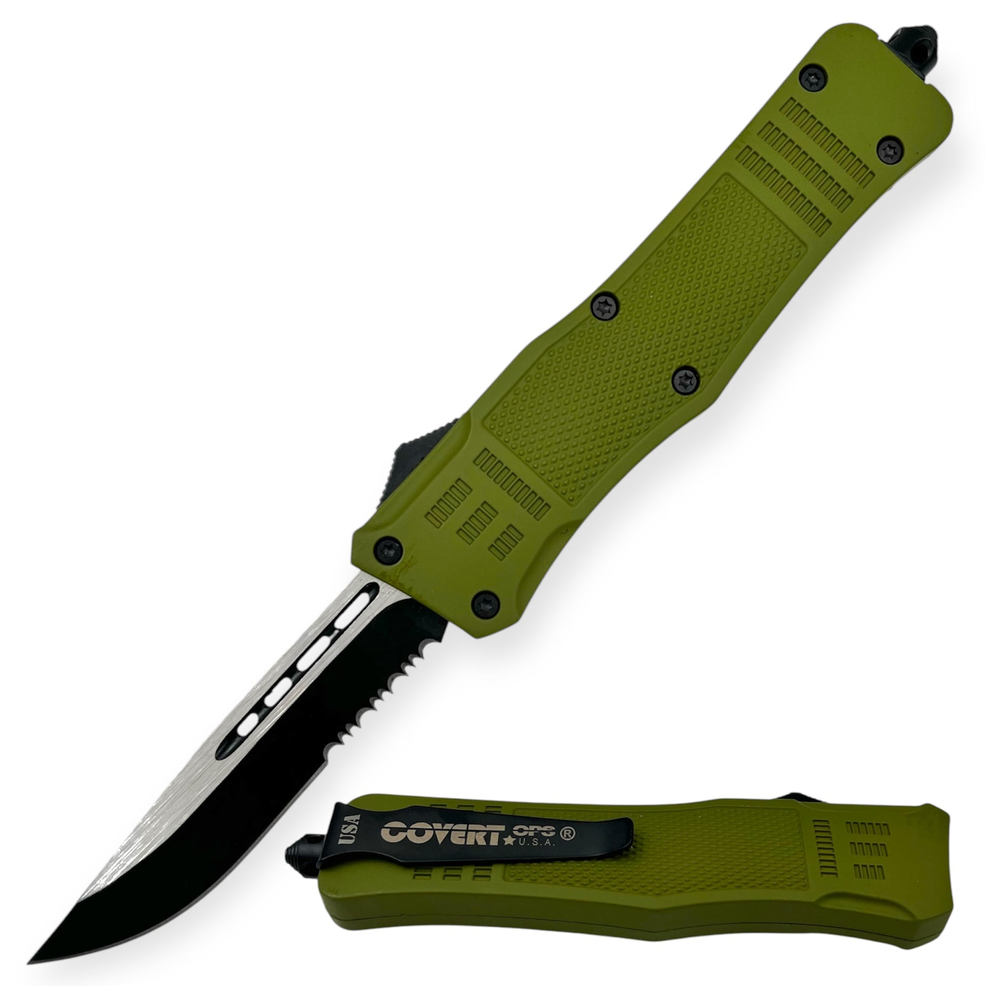Covert Ops® OTF 9 Inch Auto Tanto Blade Green Drop Point